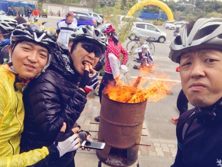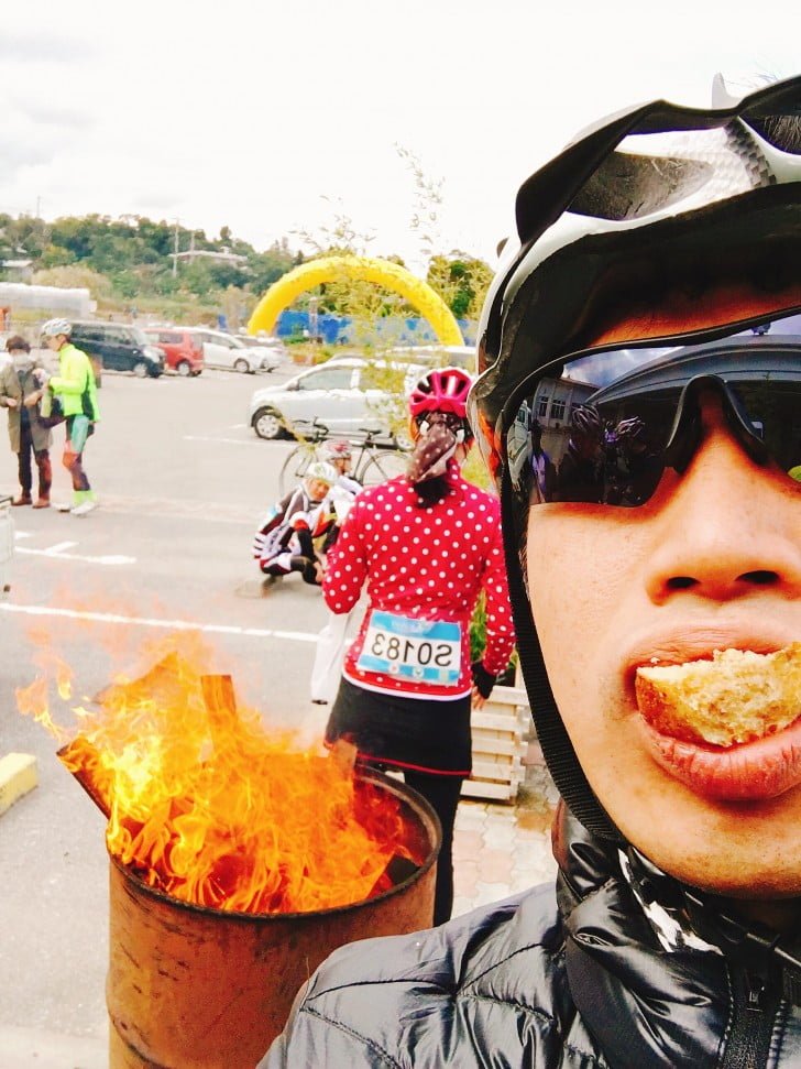 強風の登り坂を、他ライダーをブチ抜きまくるそのスピードが、自分に残った力を120%ふり絞らないととてもついて行けなくて、前を見る余裕もなくアスファルトを見ながら歯をギリギリ食いしばって、なんとかついて行ったけど、あの時はあまりの辛さにマジちょっと涙出たからね。そして1人で笑ってしまった。
